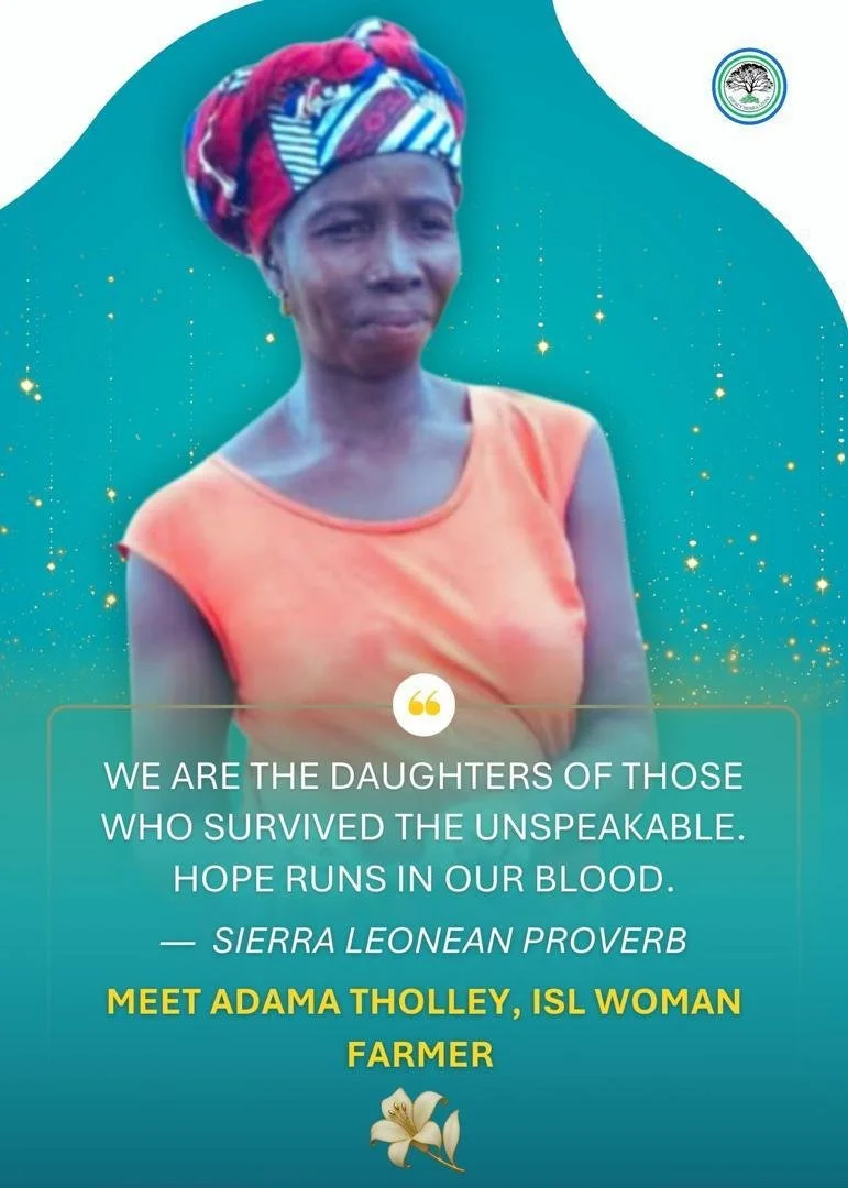 This is Adama Tholley. A widow who farms hope alongside cassava. A mother of five who refuses to let loss have the final word. A woman in white, ready to start again.