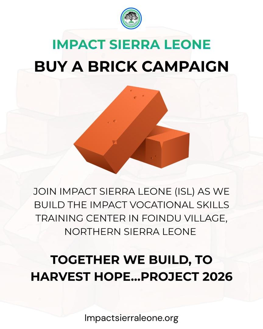 Impact Sierra Leone, in an effort to bring our supporters into our building project, launched an initiative called the Buy a Brick program to pull you closer to our project, and you forever become a part of the building.
